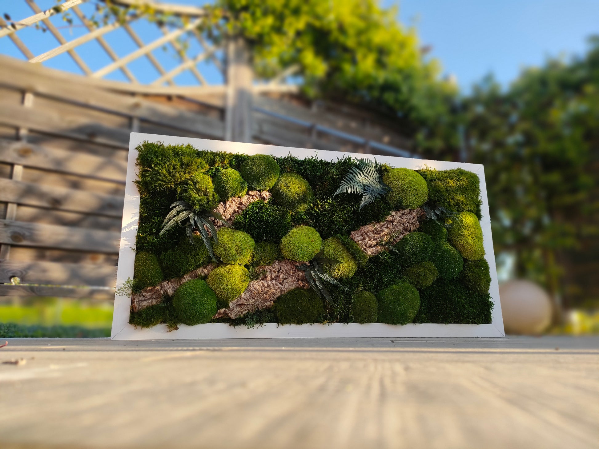 Cornice con piante stabilizzate che evocano purezza e armonia. Realizzata a mano, zero manutenzione. Disponibile in 3 colori.